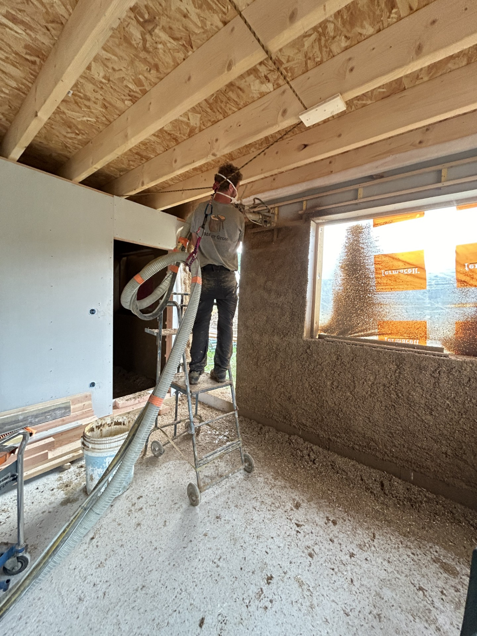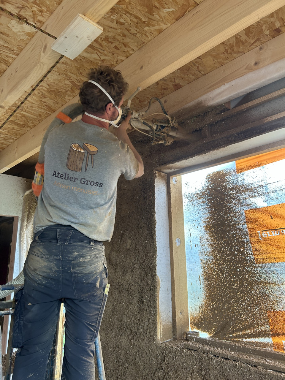 Notre formation : En menuiserie chez les compagnons du devoir et à l école de chanvre pour la mise en œuvre de béton de chanvre projeté.